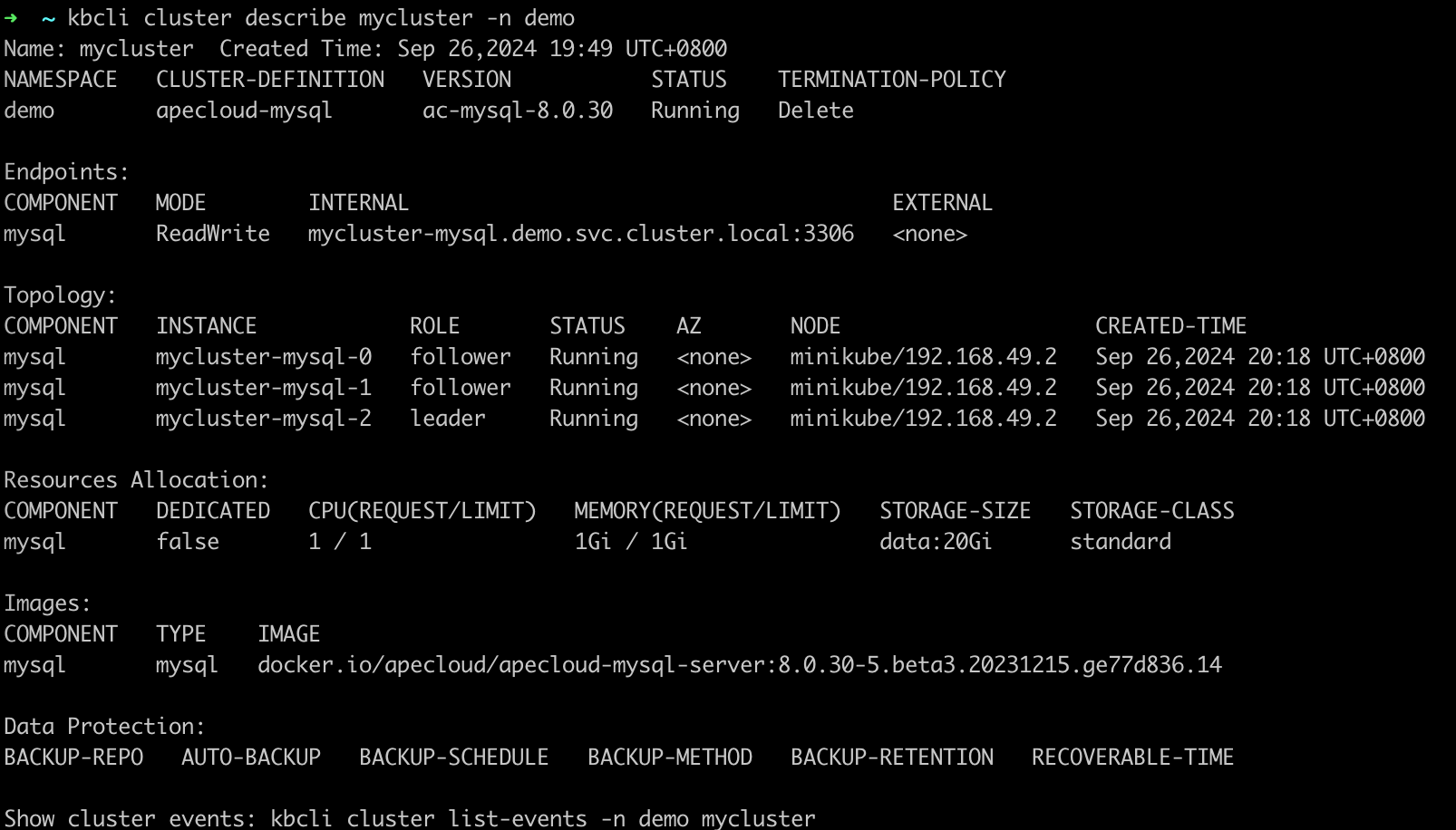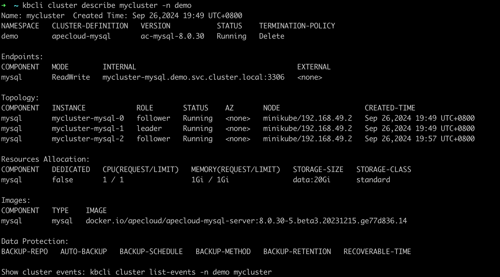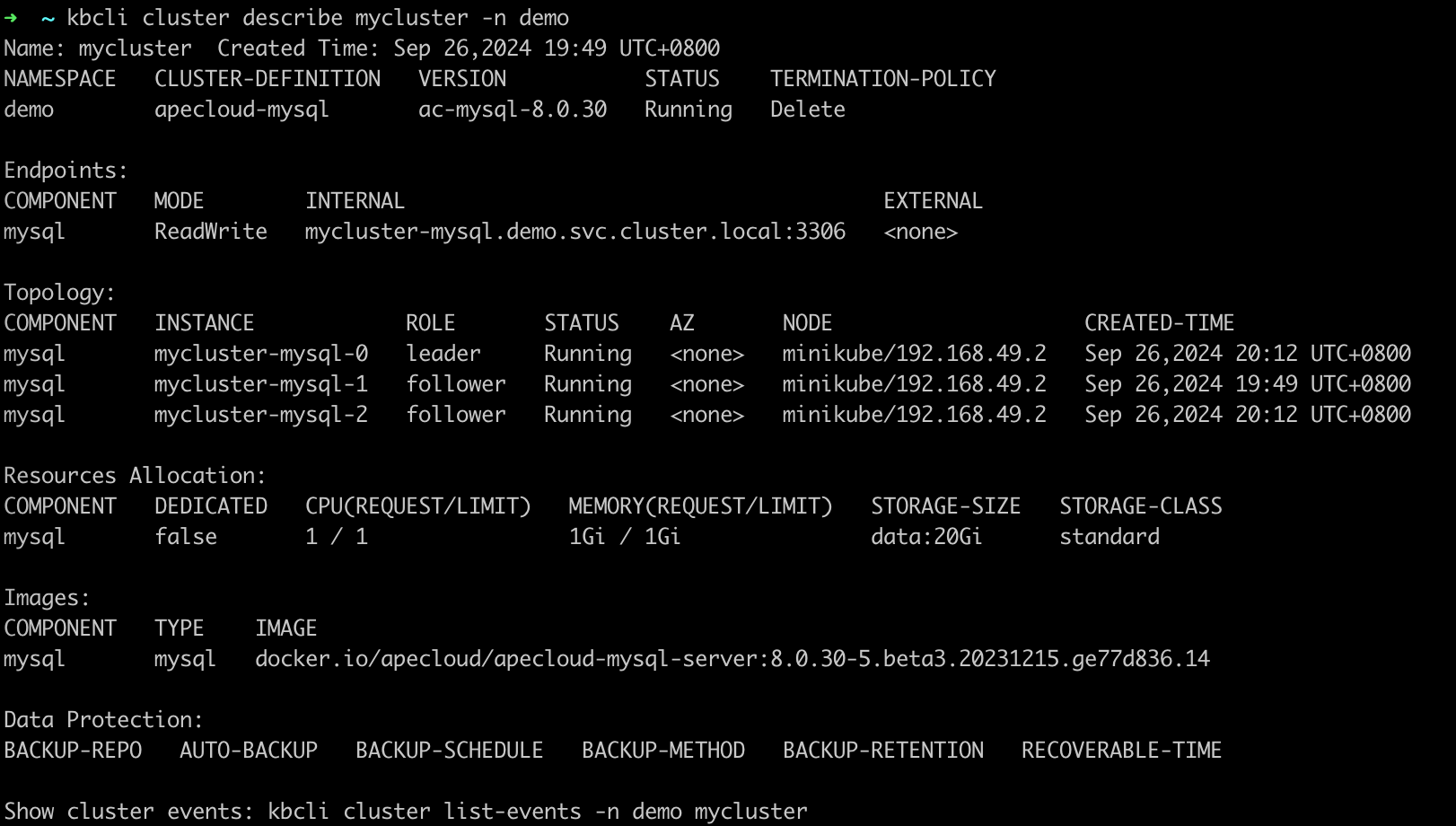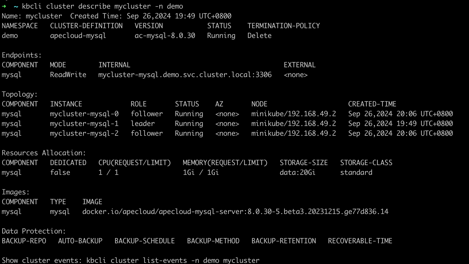 kubectl delete pod mycluster-mysql-1 mycluster-mysql-2 -n demo