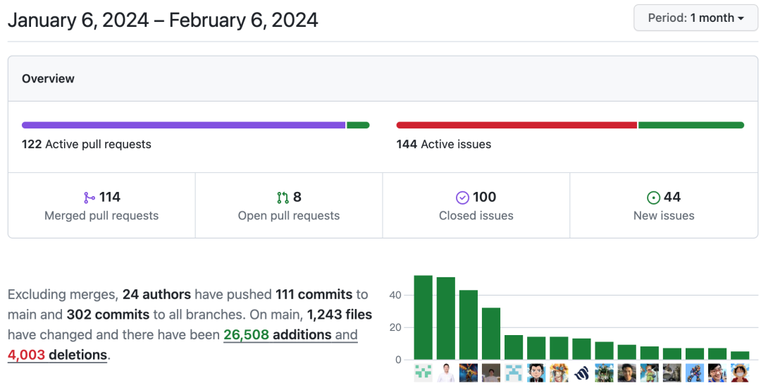 In the past month, the community has merged 114 PRs and resolved 100 issues. A total of 24 community members participated in these contributions, including 5 new contributors.